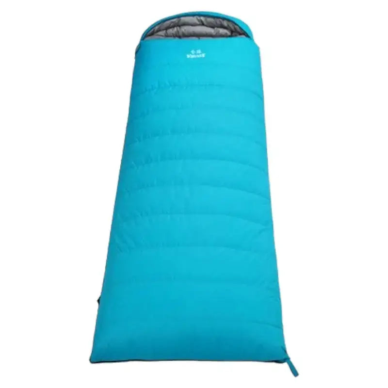 Decken daunenschlafsack mit wasserabweisendem 320T-Nylon-Außenmaterial zum Schutz gegen Feuchtigkeit und Bodennässe. Die Füllung aus 90% weißen Gänsedaunen bietet Wärmeisolierung bei geringem Gewicht. Der durchgehende 2-Wege-Reißverschluss ermöglicht die vollständige Öffnung zur Nutzung als Decke. Geeignet für Trekking-Touren, Biwak und längere Outdoor-Aufenthalte in wechselnden Klimabedingungen.