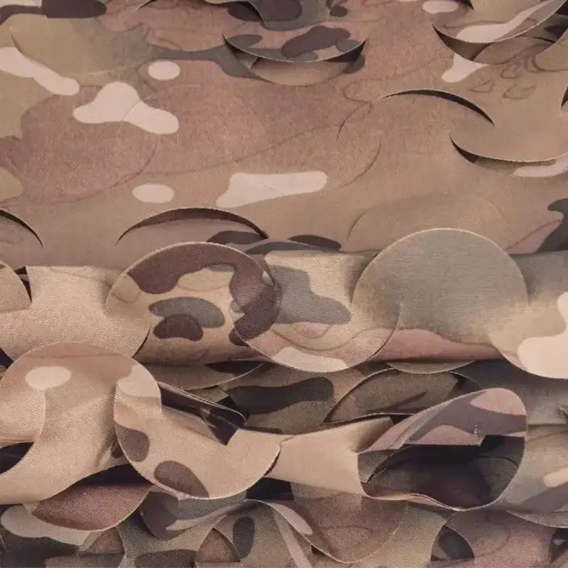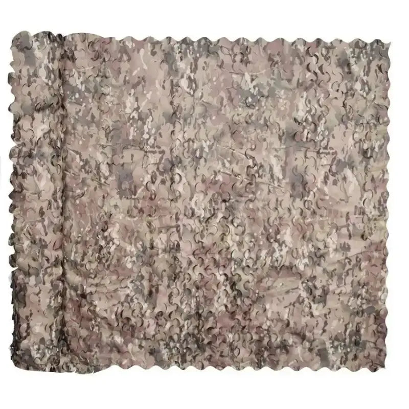 Tarnnetz wüstentarn- und Sandtönen für vielseitige Outdoor-Anwendungen. Das strapazierfähige Oxford-Gewebe mit Antireflex-Beschichtung verhindert Lichtreflexionen und gewährleistet zuverlässige Tarnung in trockenen, sandigen Umgebungen.